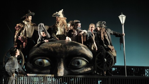 Ближе к концу сезона фоменки сыграли премьеру спектакля «Капитан Фракасс». Его поставил художественный руководитель театра, режиссер Евгений Каменькович. В течение двадцати лет он мечтал перенести на сцену любимый роман своего отрочества. Прежде всего, «Капитан Фракасс» - яркое зрелище. Большая сцена «Мастерской» открыта во всей своей глубине и ширине, сложные конструкции с движущимися лентами расположены так, что создается прихотливая, многоуровневая перспектива. Эти движущиеся ленты, по которым вышагивают актеры, нужны для того, чтобы передать настроение дороги, вечного пути в неизвестность. Ведь герои спектакля и романа Теофиля Готье - бродячие актеры. Комментируя премьеру, Евгений Каменькович признался, что всегда мечтал «замахнуться» на постановку любимейшего романа всех мальчишек «Три мушкетера», но пока не осмелился. Зато осилил «Капитана Фракасса», сделав в финале спектакля «поклон» знаменитому роману Александра Дюма. Какой – узнаете, когда придете в театр. На выбор литературной основы повлияло еще и то, что «Капитан Фракасс» - не только роман плаща и шпаги, но и гимн театру. Герои – актеры передвижной труппы Тирана – смешные, нелепые, ревнивые к чужому успеху, но в решающие моменты они проявляются как очень верные друг другу, отзывчивые и благородные люди. Время действия – XVII век, когда французский театр уже вступал в своей золотой период, когда Мольер уже заставил власть имущих считаться с комедиантами. Провинциальная труппа трагика и по совместительству «продюсера» Тирана тоже в итоге покорит Париж, но сначала помыкается по гасконскому бездорожью. Там, кстати, к их компании примкнет обедневший дворянин барон де Сигоньяк – как и его знаменитый литературный земляк Д'Артаньян, он двинется на Париж. Правда, его вырвало из родового замка отнюдь не юношеское тщеславие, но любовь к актрисе бродячей труппы Изабелле. Пиршество для глаз В своем художественном решении спектакль «Капитан Фракасс» во многом завязан на систему масок комедии дель арте (это, кстати, прекрасно обыграно в программке к спектаклю – она представляет собой отдельное произведение изобразительного искусства). Актеры труппы Тирана действуют в то время, когда пьесы писались и легко переписывались в зависимости от обстоятельств, но каркасом действа служил тот или иной готовый сюжет из жизни «масок»: влюбленных, их отцов, слуг. Такова труппа, к которой пристал барон де Сигоньяк. Однажды ночь застает актеров в зимнем поле, и один из них, выступавший под маской «Капитан Матамор» умирает. Чтобы выручить товарищей, Сигоньяк выходит на сцену вместо него, под именем Капитан Фракасс. Новый актер приносит труппе удачу и успех в Париже. Сценограф Мария Митрофанова и художник по костюмам Евгения Панфилова виртуозно провели «корабль» спектакля между рифами исторической правды и гротеска. Созданные ими декорации и костюмы говорят о замечательном знании эпохи, но также полны нежного юмора – не только к вельможам и комедиантам XVII века, но и к многочисленным сценическим, кинематографическим и прочим интерпретациям образов прекрасных дам, служанок-интриганок, дуэлянтов, злодеев-соблазнителей. «Капитан Фракасс» в «Мастерской Петра Фоменко» - пиршество для глаз. А от схваток на рапирах захватывает дух. Фехтуют в спектакле много и красиво. Полгода занимался с 