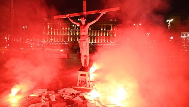 Полицейские на Лубянской площади в Москве сняли с горящего креста и доставили в отделение Павла Крисевича. Его акция была посвящена политзаключенным. Происходившее снимал фотограф Георгий Марков. По его словам, акциониста Павла Крисевича задержали. «Нас окружили сотрудники ФСО», — рассказал Марков. Христа увезли в отделение полиции. Цель акции – обратить внимание на российских политзаключенных. Активисты облили крест веществом, “которое горит при 40℃ и не наносит человеку вреда”. Павел Крисевич горел на кресте, а собравшиеся бросали в огонь тома уголовных дел.
