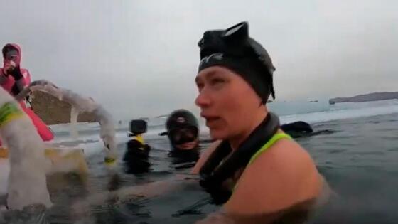 Вынырнув, спортсменка была так довольна, словно искупалась в теплом море, утверждает президент клуба закаливания. Уже в этом году она планирует обновить свой рекорд, проплыв 100 метров.