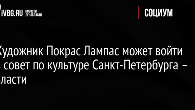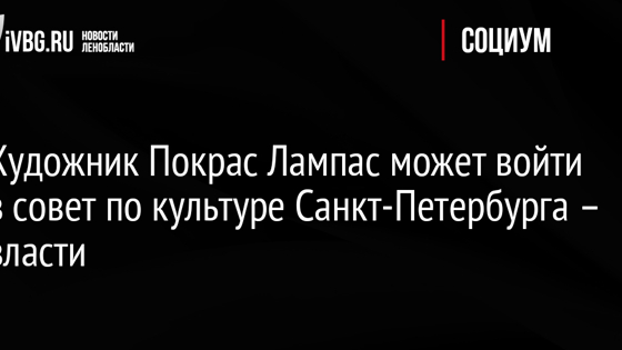 Состав совета по культуре при губернаторе Санкт-Петербурга будет обновлен, а него может войти известный художник-каллиграф Покрас Лампас (Арсений Пыженков), сообщил вице-губернатор города Борис Пиотровский. Пиотровский добавил, что модернизация существующего совета по культуре при губернаторе идет уже сейчас. Сам Покрас Лампас сообщил, что до этого времени общался с представителями комитета по культуре Санкт-Петербурга только в рамках экспертной деятельности, без конкретных совместных проектов. Совет по культуре и искусству при губернаторе Санкт-Петербурга был создан в 2011 году. Согласно положению о совете, его задачами является информирование губернатора Санкт-Петербурга о положении дел в сфере культуры и искусства, обеспечения его взаимодействия с творческими объединениями, организациями культуры и искусства, представителями творческой интеллигенции, выработки предложений по актуальным вопросам в области культуры и искусства.