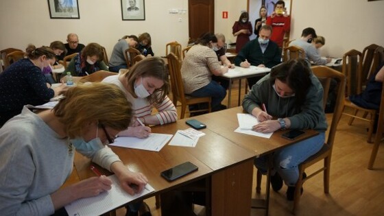 А вот переводчику Дмитрию Полякову из Гагаринского района неважно, кто будет читать текст, главное – проверить уровень своих знаний. «Для меня сегодняшний «Тотальный диктант» юбилейный, десятый. Ни разу пока ещё не написал хуже чем на четвёрку. Очень важно, чтобы при помощи таких акций мы не забывали о том, что писать и говорить надо грамотно».