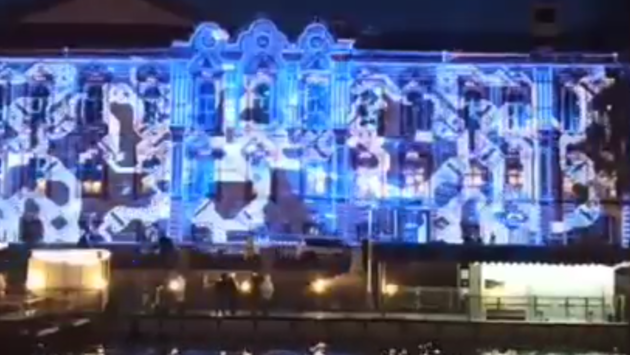 Световое шоу на открытии библиотеки Маяковского в Петербурге сняли на видео