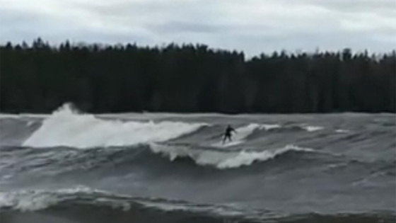 На Финском заливе серферы ловят волну во время шторма. Видео