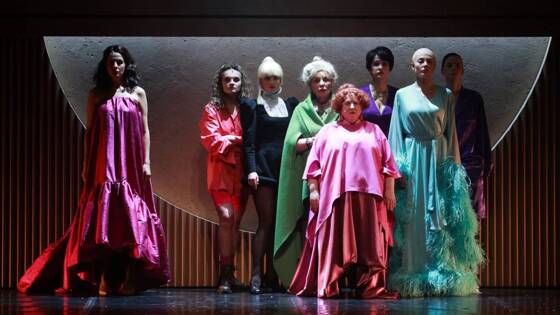 Театр имени Моссовета в свой 99-й сезон решил удивить публику, объединив два столь любимых ею жанра — комедию и детектив — в спектакле «Восемь любящих женщин» (режиссер-постановщик Олеся Невмержицкая) по пьесе Робера Тома «Восемь женщин». И не просто объединить, а представить в виде «психоделического абсурд-ноктюрна с элементами черной комедии». Почему-то сразу вспоминается грибоедовский Фамусов с его фразой о московских барышнях: «Словечка в простоте не скажут, все с ужимкой».