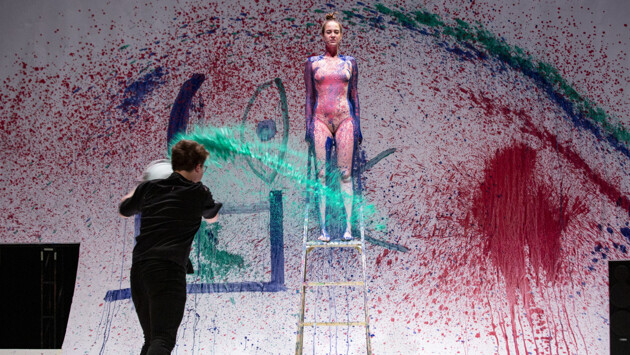 А еще здесь массовка в дождевиках поет All I Need is Your Love Tonight, кстати, все в тех же голубых, розовых и зеленых дождевиках. А Терентий читает «Демона» Лермонтова. Каждое же действие обрамлено яркой вспышкой света и щелчком затвора фотоаппарата, являясь отголоском современности и неразрывно ассоциируясь с Instagram, TikTok и прочими социальными сетями, где так легко не жить, а казаться, и такое ощущение, что порой реальность и вымысел настолько сплетаются, что уже живешь не для себя, а будто ты 24 часа в сутки «в объективе».