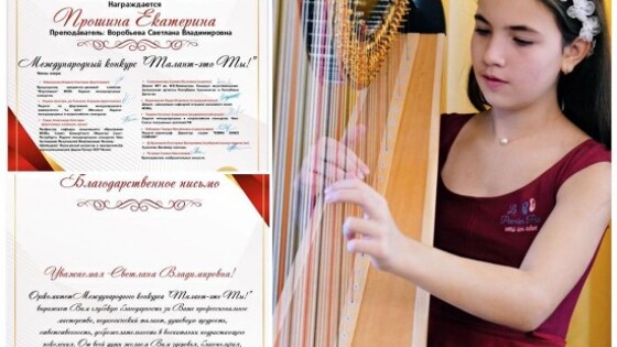 В ДМШ им. Мясковского поздравили ученицу Екатерину Прошину, ставшую лауреатом II степени Международного конкурса «Талант - это ты!». Ученица удостоилась такого звания за игру на арфе. Пост появился в Instagram учебного учреждения.