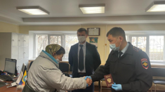 Сотрудники отдела по вопросам миграции Управления МВД России по г. Элисте оказали помощь в восстановлении и получении паспорта гражданина Российской Федерации 62-летней уроженке Украины, проживающей последние несколько лет в Республике Калмыкия. В начале года в полицию поступила информация от Уполномоченного по правам человека в Республике Калмыкия о том, что местная жительница на протяжении неопределенного времени проживает без документа, удостоверяющего личность. Выяснилось, что гражданка потеряла паспорт, выданный СССР и в дальнейшем самостоятельно за восстановлением документа не обращалась ввиду жизненных обстоятельств. Для его восстановления по инициативе сотрудников полиции были проведены необходимые административные процедуры. Работу осложняло то, что гражданка не могла точно пояснить, в каком городе или при каких обстоятельствах был утерян документ. Так, для установления личности сотрудниками подразделения по вопросам миграции был направлен ряд запросов в регионы России, где ранее проживала гражданка, проинспектирован ряд архивных документов. В результате кропотливой работы сотрудниками отдела по вопросам миграции Управления МВД России по г. Элисте были получены сведения о том, что в городе Мичуринск Тамбовской области в архивных учетах имеется запись о том, что в 1993 году обратившейся женщине был выдан паспорт гражданина СССР, а паспорт гражданина Российской Федерации она не получала. Женщину удалось идентифицировать благодаря полученной информации и наличию в архиве ее фотографии. Таким образом, полицейские совместно с представителем аппарата Уполномоченного по правам человека Калмыкии помогли женщине в максимально короткие сроки получить новый паспорт гражданина Российской Федерации. 26 февраля начальник ОВМ УМВД РФ по г. Элисте и представитель аппарата Уполномоченного по правам человека в Республике Калмыкия вручили женщине российский паспорт, поздравили ее, пожелали крепкого здоровья и благополучия, а также рекомендовали бережнее относиться к обязательному и главному документу. Теперь полученный документ позволит гражданке оформить положенные социальные выплаты и решить ряд других вопросов в сфере здравоохранения. Женщина, в свою очередь, поблагодарила сотрудников полиции за оказанную помощь, инициативность и неравнодушие.