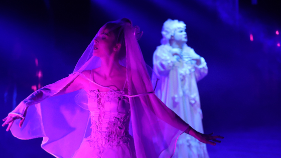 В спектакле Олега Леушина на сцене появляется новый персонаж - символ. Идеальную женщину, мечту каждого из героев, играет Люся Лазарева, хрупкая красавица с певучим голосом. Она манит и зовет в супружескую идиллию , которая существует только в воображении. В реальности пылких женихов ждет дородная и простоватая Агафья Тихоновна в исполнении Максима Гигенина, правда тоже неисправимая фантазерка. Ведь ей так хочется создать свой эталон мужественности: «губы Никанора Ивановича да приставить к носу Ивана Кузьмича, да взять сколько-нибудь развязности, какая у Балтазара Балтазарыча, да, пожалуй, прибавить к этому ещё дородности Ивана Павловича». Без образца так трудно сделать выбор, и Агафья Тихоновна вдохновенно творит кумира.