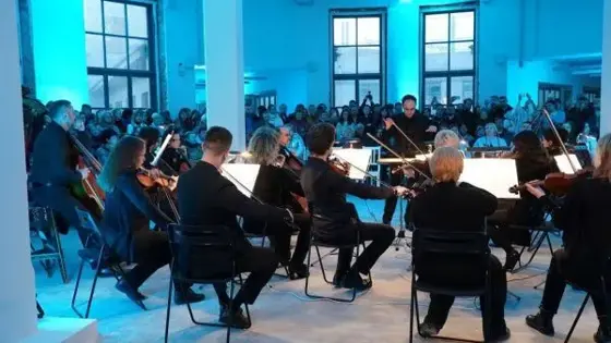 Генеральный директор Государственной Третьяковской галереи Зельфира Трегулова напомнила, что здание музея откроется в мае 2023-го большой выставкой из собрания Третьяковской галереи. Пока идет окончание реставрационных работ и установка климатического оборудования и систем безопасности. - До того момента, как оно будет подключено и в течение нескольких месяцев апробировано, мы не можем представлять в этом пространстве живопись, графику и даже скульптуру. Но нам очень хотелось в эту "Ночь музеев" принять жителей Самары и тех, кто оказался в эти выходные здесь, в том числе и тех, кто приехал на фантастический просто фестиваль "Российская студенческая весна", к тому же здание в высокой степени готовности. Поэтому мы решили представить то, что можно показывать здесь и сейчас. Это видеоарт. Например, картина без названия команды "Синий суп", а это первое произведение видеоарта, приобретенное Третьяковской галереей. Этой работой мы начинали ретроспективу Ивана Айвазовского в Москве. И именно показ этого видео сделал творчество Айвазовского актуальным для молодых людей. Оно подчеркнуло метафизическое вселенское звучание его работ, помогло развенчать ложную интерпретацию Айвазовского, как художника салонного, автора картин с красивыми закатами на море, - рассказала гендиректор. Она подчеркнула, что работы, которые показывает музей в Самаре– это лучшие произведения в жанре видеоарта из собрания Третьяковской галереи. - Я была очень рада при подъезде к музею увидеть огромную очередь, вполне сопоставимую с той очередью, которая стоит сегодня в Лаврушинском переулке на вход в Третьяковскую галерею в Москве, - поделилась Зельфира Трегулова. Директор филиала Третьяковской галереи в Самаре Михаил Савченко отметил, что в здании Фабрики-кухни филиал проводит "Ночь музеев" впервые. - Люди ходят в музеи, чтобы соприкоснуться с искусством, побыть наедине со своими мыслями. И нам хотелось, чтобы посетители смогли сделать какую-то паузу в этой буре событий, отвлечься от этого потока новостей, - рассказал Михаил Савченко о концепции выставки. - Мы придумали идею "Фабрики спокойствия". Посетители смогут спокойно походить, посмотреть. Главный объект – это само здание. Второй момент – это произведения искусства из коллекции Третьяковской галереи, видеоарт. Это достаточно новый жанр, произведения которого музей начал покупать лет 10-15 назад. В коллекции есть работы и самарских художников, в том числе Владимира Логутова. Мы отобрали видео, на которых, на первый взгляд, как будто бы ничего не происходит. Но если мы остановимся, присмотримся, то увидим, что есть какая-то метаморфоза, какое-то микрособытие, которое создает смысл. Например, вот перед нами картина группы "Синий суп", на ней колышется море, в котором почему-то есть трещина. Этими работами мы хотели бы подтолкнуть посетителей к какой-то созерцательности, размышлениям. И третья составляющая – это музыка. Мы пригласили камерный оркестр Самарской филармонии, которым дирижирует новый еще для Самары человек - дирижер итальянец Филиппо Десси. Он составил программу из произведений, которые нечасто исполняют, при этом они очень тонко подходят к концепции "Фабрики спокойствия". Посетители отметили оригинальность идеи организаторов. Так, Иван Терентьев заметил: - Очень антуражно и необычно: музыка и