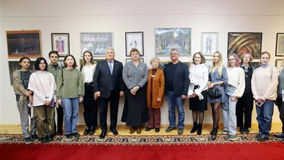 Геннадий Котельников пообщался с художницей, отметил выразительность театральных работ на выставке.