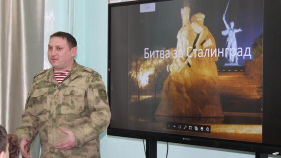 Росгвардейцы провели занятие, посвященное Дню Героев Отечества, для кадет школы № 15 им. А. Ф. Клубова. Оно прошло накануне патриотического праздника в рамках Всероссийского ведомственного флешмоба «Читаем Сараева», приуроченного к 80-й годовщине Сталинградской битвы.