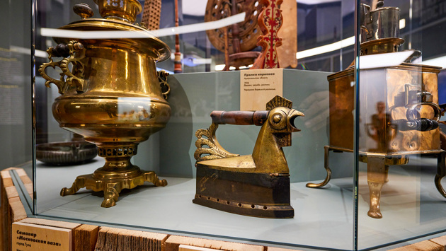 Увидеть их можно в зале, посвященном ведущим и узнаваемым промыслам — «золотым брендам» России. Это не только матрешки и гжель, но и расписные деревянные изделия из Хохломы, подносы из Жостова, шкатулки из Федоскина, знаменитая дымковская игрушка, палехская лаковая миниатюра и многое другое.
