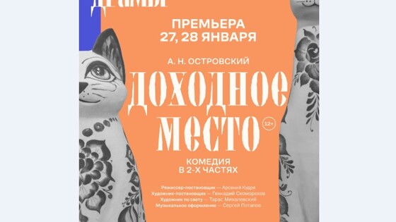В наступившем году исполняется 200 лет со дня рождения драматурга и писателя Александра Николаевича Островского. Уже 27 и 28 января в Рязанском театре драмы состоятся первые премьерные показы комедии по пьесе А.Н. Островского "Доходное место". Режиссер спектакля Арсений Кудря. В спектакле заняты: заслуженный артист РФ Анатолий Конопицкий; почётные работники культуры и искусства Рязанской области Юрий Борисов, Марина Мясникова; артисты Полина Бабаева, Андрей Блажилин, Анна Демочкина, Екатерина Кишева, Валерий Рыжков, Никита Московой-Руссо, Дмитрий Рахманин. Художник-постановщик – Геннадий Скоморохов, художник по свету – Тарас Михалевский, музыкальное оформление – Сергей Потапов. Комедия Островского, написанная в середине XIX века, в момент своего появления вызывала большие споры в кругах писателей и журналистов и была отмечена даже Львом Толстым. Что же так увлекало всех в этой комедии? Молодой человек, недавно окончивший университет, всей душой стремится приносить пользу обществу, но его амбиции и идеалы постоянно держат его в противостоянии с коллегами и даже с родственниками. Успехи его на службе незначительны и авторитет его невелик. Он встречает прекрасную молодую девушку, в которую влюбляется. После свадьбы маменька и сестра наставляют молодую жену, пользуясь ее наивностью, "проси мужа - давай денег да давай, где хочешь возьми, да подай. Умел жениться, умей и жену содержать прилично". Окружение Жадова считает материальное благополучие важнее убеждений. Устоят ли его принципы?..