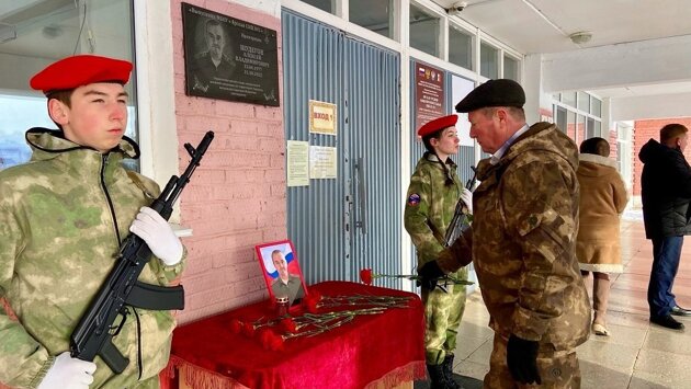 В память о герое-земляке состоялась минута молчания. К мемориальной доске возложили цветы.