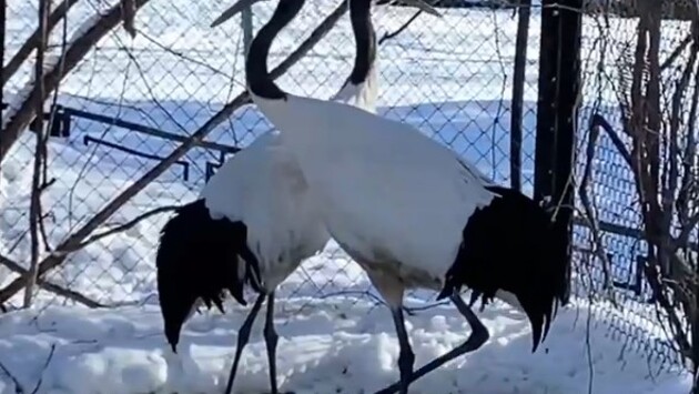 Ленинградский зоопарк поделился в своем Telegram-канале видео с «танцующими» японскими журавлями.