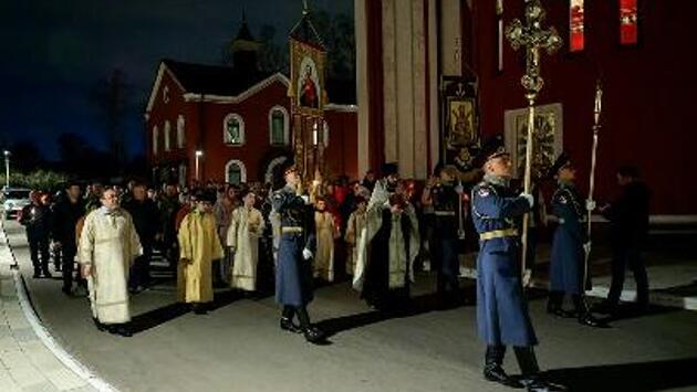 По окончании службы настоятель поздравил прихожан-военнослужащих, членов их семей и горожан со Светлым Христовым Воскресением, а также зачитал пасхальные послания Святейшего Патриарха Московского и всея Руси Кирилла и епископа Балашихинского и Орехово-Зуевского Николая.