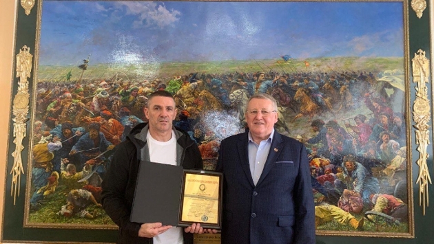 Сергей Козубенко приехал не с пустыми руками - к открытию в центральном музее Тавриды выставки к 240-летию издания манифеста императрицы Екатерины II о присоединении полуострова к России, он подарил ценную картину Олега Маслова «Битва при реке Калалах».