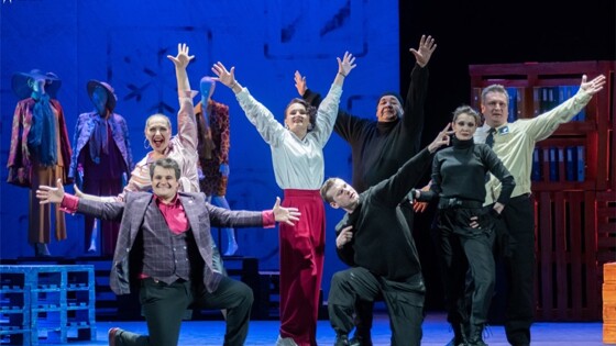 Незадолго до премьеры Борис Лагода дал интервью областной газете "Рязанские ведомости". В нем было не только о ближайшей постановке, но и о планах театра, режиссерской позиции, "ноу-хау" его отношений с коллективом, театральной среде Рязани и многом другом. Относительно "Воров" Лагода рассказал, что написал эту пьесу для Котласского драматического театра по заказу самого театра на комедию в сжатые сроки. На этой сцене пьеса была впервые поставлена под исходным названием "Воры". Осенью прошлого года спектакль с таким же названием вышел на подмостках Саратовской оперетты. Судя по отзывам в прессе и соцсетях, в Котласе и Саратове бурлескная постановка имела успех. В Рязани осуществлена уже третья инсценировка "Воров" среди театров России. Как видим, для рязанской сцены заглавие пьесы изменили. На мой взгляд, замена в целом удачная – название стало более интригующим, вызывающим интерес. И новое название хорошо обыгрывается в спектакле: испуганный вопрос "Кто здесь?" – точно эстафета, передается от героя к герою. Но вместе с тем оно не несет, не побоюсь этого слова, многозначительного социального подтекста, которое закладывал драматург. В пьесе воры в том или ином смысле все, а не только Чак в комбинезоне и с закрытым лицом. В рязанском спектакле занят сильный актерский состав: заслуженный артист РФ Олег Пичурин; почетные работники культуры и искусства Рязанской области Юрий Борисов и Сергей Невидин и другие талантливые артисты: Андрей Блажилин, Полина Бабаева, Анастасия Бурмистрова, Анастасия Дягилева, Мария Звонарева, Екатерина Кишева, Наталья Моргуненко, Юрий Мотков, Роман Пастухов, Владислав Пантелеев, Дмитрий Рахманин. Художник-постановщик Эрих Вильсон, балетмейстер Нелли Дашевская, художник по свету Андрей Козлов. События пьесы "Воры" развиваются в Америке, и это имеет значение, на мой скромный взгляд – не театроведа, а рядового зрителя. Впрочем, для обыкновенного зрителя, в конечном счете, в театре все и делается. Особенно часто "для него" ставятся комедии и иной легкий жанр. "Чтобы прийти в театр с семьей и друзьями отдохнуть, расслабиться, посмотреть комедию положений, посмеяться над персонажами, над их пороками, а в чем-то, может, и себя узнать. И вместе с тем получить заряд хорошего настроения", – сформулировал Борис Лагода выбор пьесы для знакомства с рязанской публикой. Эти слова режиссера являются "сверхзадачей" не только для конкретной постановки, но и почти для каждой комедии. Но "Кто здесь?" "дислоцирована" в Америке, в Бостоне, и этот факт имеет значение для всего ее художественного решения. Для той эстетики, в которой живут персонажи, и в которой оказывается публика вместе с ними. Далее мне предстоит трудная задача: говорить о пьесе так, чтобы избегать спойлеров, и вместе с тем делиться своими впечатлениями. Искренне рекомендую зрителям посмотреть "Кто здесь?". Этот спектакль удачно вписывается в контекст весны, предпраздничного настроения и вечера отдыха. Генри (Андрей Блажилин). Конечно, без некоторых "базовых установок" не обойтись. Сюжет истории вполне интернациональный, а для нашей страны – так едва ли не типовой: заместитель директора крупного торгового склада Генри проворовался, перед ним маячит федеральная тюрьма штата Массачусетс, и только чудо может его спасти… При этом автор все же выбрал Америку и указал в а