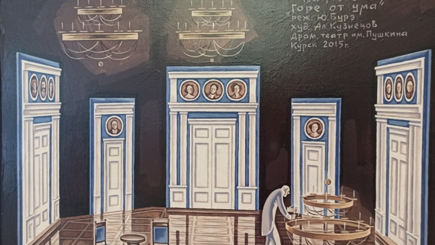 Вчера, 23 апреля, в зрительном фойе Курского государственного драматического театра открылась выставка главного художника Курского государственного драматического театра имени Пушкина, лауреата Государственной премии России Александра Кузнецова «В пространстве курской сцены». В экспозиции — макеты и эскизы к спектаклям, которые шли и идут на сцене нашего театра. Жизнь Александра Васильевича неразрывно связана с театром. Его профессия — одна из сложнейших в театральном деле, ведь совместно с режиссером-постановщиком необходимо найти способ выражения основного замысла драматурга. Многочисленные работы позволяют утверждать, что Александр Кузнецов не только успешно справляется со своей работой, но и постоянно совершенствуется, творчески растет. Александр Кузнецов является художником-постановщиком таких спектаклей, как: «Женитьба Белугина» А. Островского, Н. Соловьева, «Женитьба Фигаро» П. Бомарше, «Ромео и Джульетта» В. Шекспира, «Обыкновенная история» по роману И. Гончарова, «Лисистрата» С. Зырянова, «Мышеловка» А. Кристи, «Дон Жуан, или Каменный гость» Ж.- Б. Мольера, Портрет Дориана Грея» О. Уайльда, «Номер 13» Р. Куни, «Барышня- крестьянка» А. Пушкина, «Горе от ума» А. Грибоедова, «Мораль пани Дульской» Г. Запольской, «Гамлет» В. Шекспира, «Бешеные деньги» А. Островского, «Чайка» А. Чехова, «Семейный портрет с посторонним» С. Лобозерова, «В ночь лунного затмения» М. Карима и других. Александр Кузнецов не только талантливый театральный художник. Неоднократно проводились его персональные выставки: Курский драматический театр им. А.С. Пушкина, 2009 г.; Литературный музей «Живопись, графика», 2011 г.; Литературный музей «Сценография», 2012 г.; Юбилейная выставка в выставочном зале «Звездный» — «Сценография, живопись, графика» 2013 г. В марте 2016 года работы художника выставлялись в Московском Центральном доме работников искусств. Это макеты и эскизы к спектаклям, с успехом прошедшим в театрах Курска, Екатеринбурга, Нижнего Тагила, Уфы, Красноярска, Иркутска, Рязани, станковые работы и библейская серия — «Рождество», «Поклонение Волхвов», «Несение креста», «Бегство в Египет», «Магдалина». В марте 2017 года проходила персональная выставка Александра Васильевича в Государственном центральном театральном музее имени Бахрушина, что, несомненно, говорит о высоком профессионализме и широком диапазоне творческих возможностей художника.