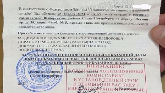Петербуржцы начали получать повестки с предупреждением