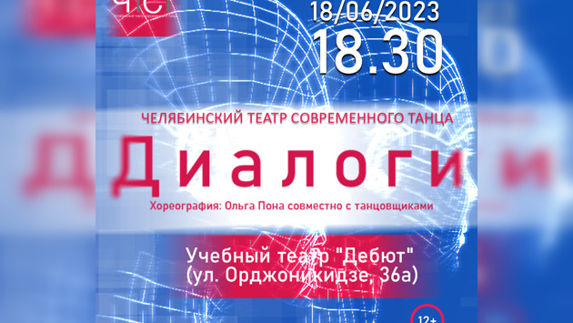 Челябинский театр современного танца готовит предпремьерный показ спектакля «Диалоги». 18 июня на сцене учебного театра «Дебют» состоится показ постановки. «Диалог — это не только коммуникация, это совместное творческое мышление, которое может возникнуть, когда подлинное чуткое слушание помогает стремлению понять и быть понятым. Только в общении, во взаимодействии человека с человеком раскрывается и «человек в человеке» как для других, так и для себя самого», - считает Ольга Пона, художественный руководитель театра. Хореография – Заслуженный артист РФ Ольга Пона в соавторстве с танцовщиками театра Исполнение – Степан Баннов, Мария Герасимова, Виктория Гордеева, Екатерина Дуйкова, Татьяна Крицкая, Татьяна Лумпова, Нурлан Нурушев, Дмитрий Чегодарь, Денис Чернышов, Кристина Чернышова, Дарья Усольцева, Рафаэль Тимербаков. СПРАВКА МБУК Челябинский театр современного танца учрежден в 1992 г. при поддержке городской администрации. За годы существования театра создан обширный репертуар. А главное, найдено неповторимое творческое лицо театра, его танцевальный язык, пластический почерк, который не спутаешь ни с чем. Театр имеет более двадцати номинации и дважды обладатель национальной театральной премии «Золотая Маска».