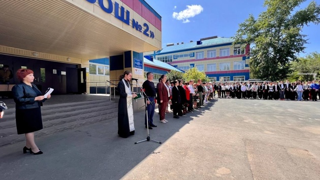 Доску установили на стене школы №2 в память о погибшем выпускнике. Он сражался в оренбургском батальоне «Яик».