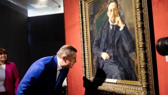 В центре экспозиции портрет Антона Чехова кисти Иосифа Браза. Рядом с ним располагаются три работы художника Иллариона Прянишникова отсылающие к сюжетам чеховских произведений - картины "Жестокие романсы" (1881), "Охота пуще неволи" (1882) и "В мастерской художника" (1890). Познакомиться с шедеврами можно до 5 ноября.