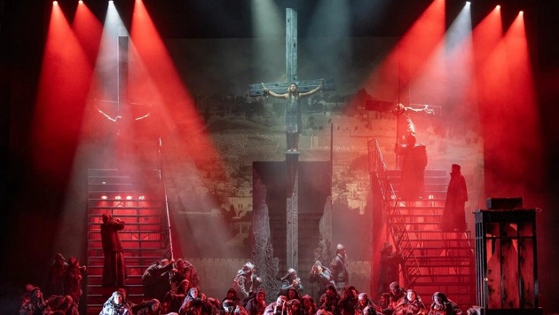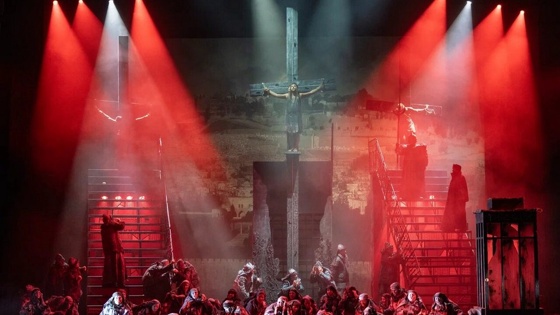 А еще здесь полноправными голосами стали свет, костюмы, видео "безбожных времен" и вся сценография. Так что действие проходило не в двух измерениях, а в трех - дне сегодняшнем со всеми его трагифарсами.