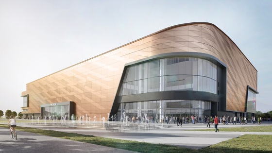 На Северо-Западе Челябинска ведётся строительство многофункционального спортивного комплекса РМК-Арена. Пятиэтажное здание площадью более 48 тысяч квадратных метров станет главной спортивной ареной для игровых видов спорта на Южном Урале. На данный момент на 75% возведены каркасы здания, строители перешли к монтажу трибун. Сам проект РМК-Арены, строительство которой ведёт Русская медная компания, уникален. В части функционала наполнения аналогов в Росси нет. В новом здании можно будет проводить как соревнования международного уровня с возможностью комфортного размещения пяти тысяч болельщиков, так и массовые концертные мероприятия на восемь тысяч зрителей. Конструктив здания - монолитный железобетон. Кровельные конструкции будут выполнены из металлокаркаса, общий объем которого составит 2800 тонн. Сама кровля – мембрана медного цвета. Фасад - в стиле хай-тек, его основная часть, около 7,5 тысячи квадратных метров, будет выполнена из окрашенного алюминия с элементами перфорации. Главные части - из светопрозрачных конструкций, которые смонтируют в виде уникальных медиаэкранов. Фасад РМК-Арены украсят три медиаэкрана. Один из них – единственный в городе 3D-экран. Планируется, что медиафасады станут настоящими «окнами в мир спорта», ведь на них будут выводиться трансляции соревнований и афиша мероприятий, проходящих в РМК-Арене. В проекте РМК-Арены предусмотрены локации для занятий единоборствами и игровыми видами спорта: бокс, кикбоксинг, боевое самбо, греко-римская борьба, дзюдо, вольная борьба, ММА, баскетбол и волейбол. Также проект предусматривает оборудование малой арены для проведения турниров по единоборствам, полноценный фитнес-клуб, медицинский центр и фудкорт. Кроме того, объект сможет принимать мероприятия, концерты любого уровня. «Основной холл сразу захватит человека желанием заниматься спортом и вести здоровый образ жизни», - отметил директор РМК-Арены Николай Сандаков. В холле появится уникальная аэротруба для профессионального парашютного спорта. Это значит, что в РМК-Арене не только смогут тренироваться любители и профессионалы – здесь можно будет проводить и международные соревнования. Проектировщики подумали не только о спортивной, но и об эстетической составляющей - напротив полетной зоны расположится большой витраж. Люди, летающие в аэротрубе, смогут наслаждаться видом на челябинский бор, который открывается с этой стороны арены. А люди, гуляющие по спортивному городу, внутри которого расположена РМК-Арена, в свою очередь, смогут наблюдать за теми, кто летает. «Сейчас проводятся работы по возведению каркаса для аэродинамической трубы, мы ждём поставки оборудования для её монтажа. Но уже сейчас, согласно проекту, мы можем сказать, что аналогов у объекта не будет на всём Урале: высота так называемого «стакана» составит 20 метров, его диаметр – почти пять метров, скорость воздушного потока - до 250 метров в секунду», - подчеркнул представитель компании-застройщика Алексей Байда. Сердце арены – это трибуны для зрителей, монтаж которых уже позволяет говорить о возводимом здании как о спортивном объекте. Трибуны будут выполнены из сборного железобетона. Общая вместимость в пиковые нагрузки - 8 000 человек. Трибуны будут иметь спортивное покрытие и комфортные кресла. Основная арена, как и все площадки, буд
