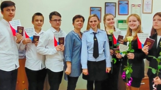 Сотрудники УМВД РФ по г.о. Красногорск провели акцию «Мы – граждане России» и в торжественной обстановке вручили паспорта восьмиклассникам гимназии.