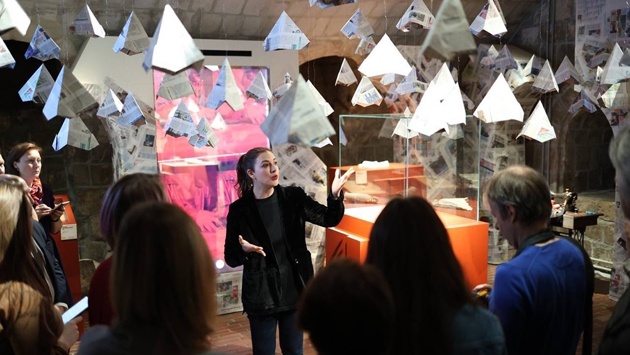 В Белокаменном подклете Старого Английского двора парка "Зарядье" начала работу выставка "Правда жизни. Вторая жизнь прочитанных газет". Продлится она до 24 декабря 2023 г.