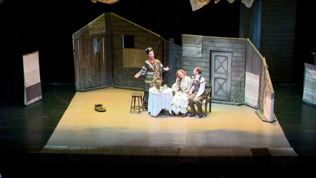 На сцене «Женитьба Бальзаминова» Государственного драматического театра «Приют Комедианта». Уморительно смешная комедия от режиссера Александра Исакова. Это Островский – много музыки и танцев.