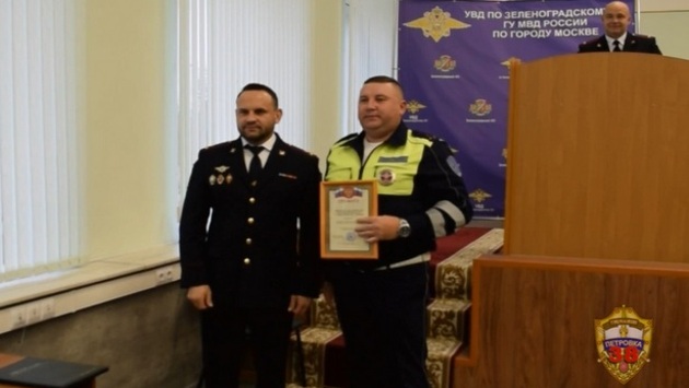За образцовое выполнение служебных обязанностей инспекторы ДПС старший лейтенант полиции Алексей Пикалев и старший лейтенант полиции Владимир Кабанов были поощрены правами начальника УВД по ЗелАО ГУ МВД России по г. Москве.