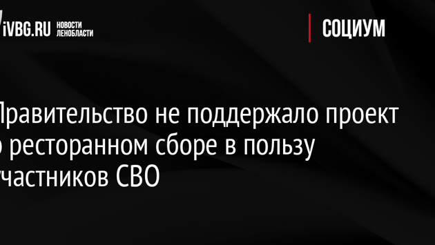 Правительство России не поддержало законопроект от депутатов КПРФ, предлагающий ввести ресторанный сбор в пользу участников специальной военной операции. В заключении правительства поясняется, что предложенный проект противоречит Налоговому кодексу России, так как авторы предлагают ввести новый сбор без соответствующих изменений в кодексе. Правительство порекомендовало отправить законопроект на концептуальную доработку. Законопроект внесли в Госдуму в сентябре 2023 года депутаты Михаил Матвеев и Вячеслав Мархаев (КПРФ). Они предложили с мая 2024 года ввести новый сбор в Москве, Подмосковье, Петербурге и Красноярском крае.