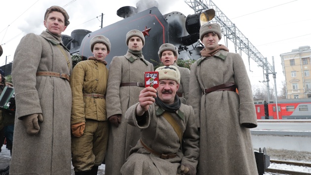 В Петербурге прошла реконструкция прибытия первого поезда с "Дороги Победы"