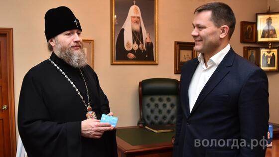 Сегодня Мэр города Сергей Воропанов и представители банка вручили владыке брендированную «Карту жителя Вологды».