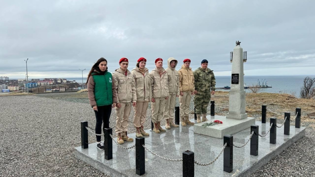В этот день молодые люди вспоминали о подвиге старшины 2-й статьи Военно-морского флота в период Великой Отечественной войны Викторова Николая Филипповича, захороненного возле маяка на смотровой площадке, а после ребята возложили цветы у памятника герою.