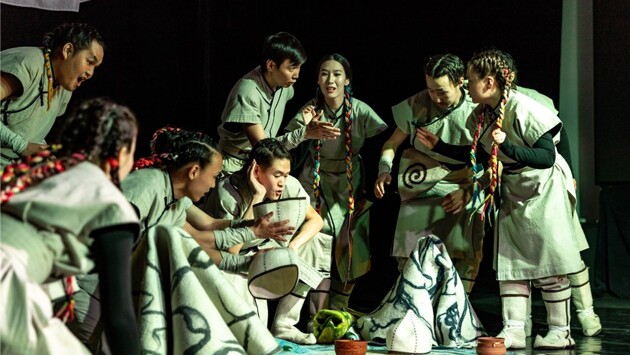 Молодежные фестивали всегда представляют огромный интерес, потому что на них можно увидеть театр будущего. После просмотра «Песни Летящей стрелы» за будущее Якутского театра я спокоен. Там все будет хорошо. Якутская культура, на взлете, я постоянно смотрю современное якутское кино, которое, на мой взгляд, является уникальным симбиозом древнего эпоса и современной национальной культуры. И вот, наконец, появился шанс увидеть якутский театр, который, к сожалению, навещает Москву не часто.Перед спектаклем выступал основатель ВУЗа Народный Артист России Андрей Саввич Борисов, который рассказал как об институте, так и о концепции спектакля.Постановка получилась по-настоящему интернациональной.В институте обучаются как якуты, так и тувинцы, алтайцы, и многие другие. Это не просто братские народы, и эпос у них похожий. Поэтому в основу спектакля были положены сразу три похожие легенды: якутская, тувинская и алтайская.Соответственно, спектакль игрался одновременно аж на пяти языках, из которых русский был не самый основной. Признаться честно, кто на каком языке говорит я не смог, но все было понятно и без перевода.Нам рассказали о различных видах горлового пения, о том, чем тувинское отличается от алтайского и от якутского. И в спектакле мы увидели и услышали эту разницу. История очень простая. Сначала нас знакомят с тремя богатырями, которые родились на Алтае, в Туве и в Якутии. Богатыри взрослеют, и вот, у них есть шанс проявить себя. Темные силы из нижнего мира похищают трех девушек, и богатыри вынуждены вступить в тяжелую схватку с этими темными силами И схватка продолжалась больше тридцати дней без сна и отдыха. При этом трое главных героев вовсе не выглядели богатырями чисто внешне, один из них был худой как спичка, второй невысокого рост, только третий более менее подходил под определение «Богатырь». Но как выяснилось, это не важно, ведь согласно эпосу – главным является не физическая сила а именно духовная мощь. Она то как раз и помогла героям победить и спасти девушек.Все это с разнообразным горловым пением. "Песнь летящей стрелы" сцена из спектакля фото организаторов фестиваля Наконец то я впервые услышал это пение живьем. Представитель каждого народа пел по своему. Очень мощно, половина зала буквально впала в транс. Спектакль проходил под живую музыку.А режиссер спектакля хрупкая Мария Маркова великолепно играла на барабанах. Параллельно с этим были показаны национальные танцы, которые значительно усилили энергию постановки. Особенно приятно, что получился не лубок для иностранцев, это не походило на отточенный балет. Иногда студенты допускали небольшие огрехи, не было симметрии танца, но это как раз хорошо, в результате мы увидели настоящий, корневой народный спектакль очень высокого качества. Вообще, складывалось впечатление, что я нахожусь на в зале, а принимаю участие в национальном шаманском обряде. Кстати, в конце, после спектакля, все желающие могли выйти на сцену, образовав большой круг и принять участие в национальном обряде-танце на удачу.Зал был забит битком, и молодые артисты были немного ошарашены аншлагом и совсем уже были удивлены бурным приемом. А удивляться нечему. Заслужили!Единственное, что плохо, - подобные спектакли показывают в Москве не каждый год. Надо гораздо чаще. Это действительно интересно.Будем