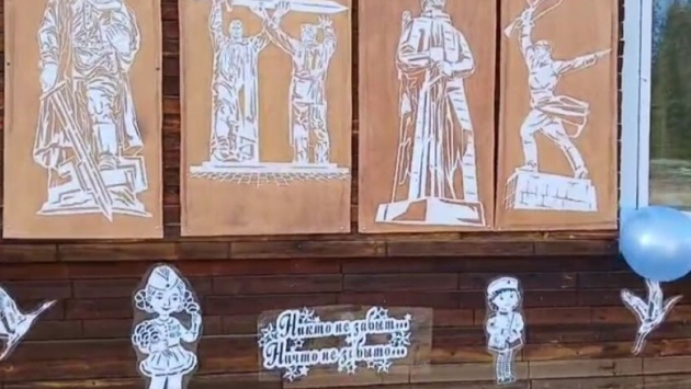 Нина Тимофеева из села Хоро Верхневилюйского района Якутии ко Дню Победы украсила свои дом и двор вырезанными из бумаги сюжетами военных фильмов и памятников, сообщает контент-партнер "РГ" ЯСИА.