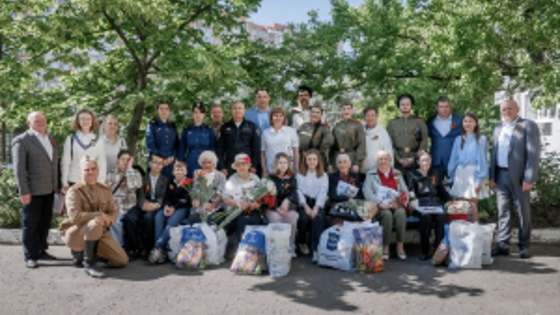 В преддверии 79-й годовщины Великой Победы продолжается ежегодное торжественное мероприятие для ветеранов Великой Отечественной войны и тружеников тыла под названием «Встреча поколений Южного Федерального округа», организатором которого традиционно является председатель Общественного совета при УМВД России по г. Краснодару Евгений Лобачев при поддержке Краевого совета ветеранов войны, труда и правоохранительных органов и руководства городского Управления МВД. Сегодня в рамках мероприятия мобильный отряд, состоящий из общественников, представителей полиции, участников народного ансамбля казачьей песни «Славица» посетил с поздравлением, концертом и вручением подарков ветеранов, проживающих на территории Западного и Центрального округов Краснодара: бывших несовершеннолетних узников фашистких лагерей – Шушану Мануковну Янукьян, Зинаиду Ивановну Яковцеву, Маргариту Егишевну Казарову, Ларису Григорьевну Савенко, Нину Филимоновну Шейко, Вадима Алексеевича Колесникова, Эмму Арисовну Лазаревич, Николая Константиновича Еремеева, Виктора Васильевича Шевцова; жителей блокадного Ленинграда – Зою Ксенофонтовну Куксову и Розу Михайловну Давыдову; участников трудового фронта – Владимира Яковлевича Синельник, Александра Владимировича Вартанова, а также ветерана Великой Отечественной войны Петра Ивановича Юрьева. В поздравлении приняли участие заместитель начальника УМВД России по г. Краснодару полковник внутренней службы Вадим Казаков и руководство отделов полиции Центрального и Западного округов городского управления полиции.