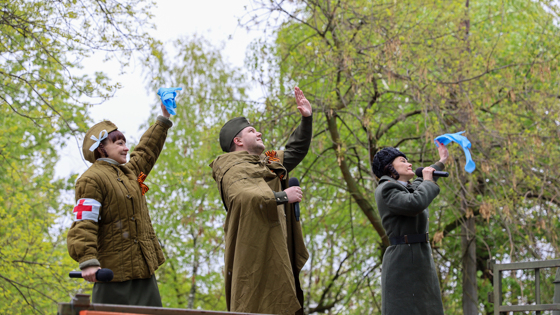 Накануне Дня Победы в Дзержинске поздравляют фронтовиков и тружеников тыла. Сегодня по доброй традиции ветеранов в преддверии праздника навестил лично глава города Дзержинска Иван Носков и депутаты городской Думы. Во дворах, где живут участники Великой Отечественной войны, развернулись праздничные концерты от творческой бригады Дворца культуры химиков. «Для всех, кто был на фронте и кого Великая Отечественная война коснулась в тылу, 9 мая – навсегда особая дата. С той самой победной весны прошло уже 79 лет, но каждый раз они волнуются, тщательно готовятся, надевают свою парадную форму с десятками наград и будто вновь молодеют. Благодарю творческую бригаду, которая каждый год дарит нашим героям праздничное настроение. Чтобы весь двор знал: здесь живет ветеран! – сказал глава города Дзержинска Иван Носков. – Если позволяет здоровье ветеранов, стараюсь каждого поздравить лично. Рад был увидеть их в добром здравии и надеюсь встретиться со всеми завтра на праздничных мероприятиях!»С импровизированной сцены на автомобиле КАМАЗ творческая бригада исполнила для ветеранов легендарную «Катюшу», «Смуглянку», «Синий платочек», «Майский вальс» и «День Победы», поздравила героев с наступающим праздником, вручила цветы и приятные подарки. Некоторые ветераны посмотрели концерт из окна, кто-то вышел к подъезду и спел песни военных лет вместе с родственниками и артистами. Творческая бригада Дворца культуры химиков посетила шестерых ветеранов. Победная музыка звучала во дворах на ул. Пирогова, Удриса, Маяковского, Гагарина, Марковникова и Бутлерова – под окнами Заслуженного ветерана Нижегородской области Александра Федоровича Вагина, ветеранов Великой Отечественной войны Александра Ивановича Самарина, Александра Ивановича Кондратьева, Владимира Михайловича Рябчикова, труженицы тыла Евдокии Васильевны Прошиной и участника Великой Отечественной войны Николая Кузьмича Рудых, который завтра, 9 мая, в кругу семьи отпразднует свой 98‑й день рождения. «Несмотря на снег, дождь и жуткий холод «всем двором» пели для нашего дедушки, участника Великой Отечественной войны Александра Ивановича Кондратьева. Спасибо за внимание к моему дедушке главе города Ивану Николаевичу Носкову, Дворцу культуры химиков, всем организаторам за уже традиционную акцию. 79‑й Победной весне быть!» – поделилась внучка Александра Ивановича Кондратьева Мария. Отметим, что накануне праздника ветеранов Великой Отечественной войны поздравляют на дому сотрудники Управления социальной защиты населения города Дзержинска. Вместе с главой города с 7 мая их навещают депутаты Думы города Дзержинска.