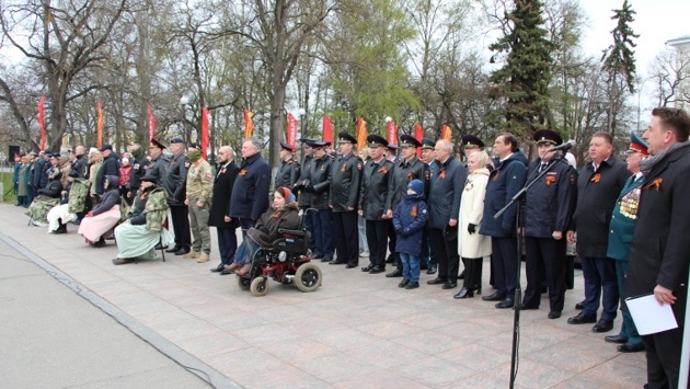 Торжественный парад прошёл и на площади Металлургов в Череповце. Под звуки марша председатель Законодательного Собрания области Андрей Луценко, депутаты Людмила Гусева, Елена Быкова, Валерий Борисов и Николай Варнавский приветствовали знаменную группу Военного ордена Жукова университета радиоэлектроники. Курсанты с честью пронесли флаг России и копию Знамени Победы.