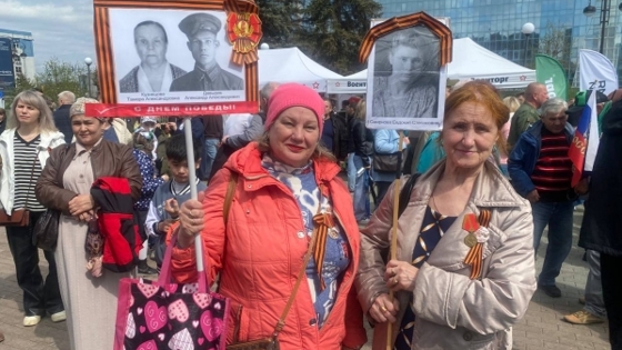 «Для меня главный герой – прадедушка Андрей Мартынов. Он ушел на фронт в 1939 году. Участвовал в Финской войне. Четыре раза горел в танке, получил два огнестрельных ранения и живой вернулся домой», – сказала тюменка Анастасия. Многие пришли на празднование Дня Победы с портретами своих родных, которые участвовали на полях сражения и работали в тылу. «Родители трудились на военном заводе и изготавливали снаряды для боевой машины «Катюша». Работали по три смены и не бывали дома. На них все держалось», – поделилась пенсионерка. Тюменцы вспоминали своих родных и близких. Для них это самые главные герои на все времена. Были и те, кто называл имена, знакомые каждому. «Горжусь героем СССР Николаем Кузнецовым. Это самый лучший мой земляк», – с улыбкой рассказала жительница Тюмени. Всех имен не перечесть, каждый внес большой вклад в Победу, считают горожане. Благодаря молодым солдатам, военнокомандующим и людям, работающим в тылу, молодое поколение живет под мирным небом. «Всегда будем чтить и надеяться, что никогда такой войны не будет», – уверенно сказал пенсионер. Празднование Дня Победы в Тюмени началось 9 мая на площади Памяти у Вечного огня. Курсанты ТВВИКУ ровным строем прошли по улице. Горожане со слезами на глазах возложили цветы. Завершился праздник минутой молчания, после которой по городу прошел марш военной техники. Фото: ФедералПресс / Наталья Шалыгина