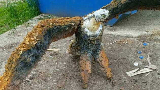 Читатель VN.ru прислал в редакцию необычную фотографию, которую он сделал в СНТ «Строитель» в районе микрорайона Щ — неизвестные выбросили на «свалку истории» муляж огромной птицы. «Шли по СНТ с наблюдательной соседкой. Та увидела это чудище возле мусорного бункера. Муляж белоголового орлана символа США. Ему место на помойке», — сопроводил фотографию подписью читатель VN.ru.
