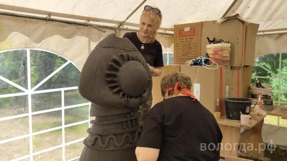 Наталья Бабина — керамист из Москвы. Она занимается любимым делом 44 года. Сейчас она в команде с коллегой трудится над скульптурой «Вологодская весна».