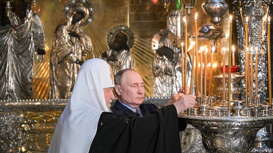 Главу государства встретил патриарх Московский и всея Руси Кирилл, после чего они вместе вошли в собор. Путин поклонился мощам преподобного Сергия Радонежского и приложился к образу.