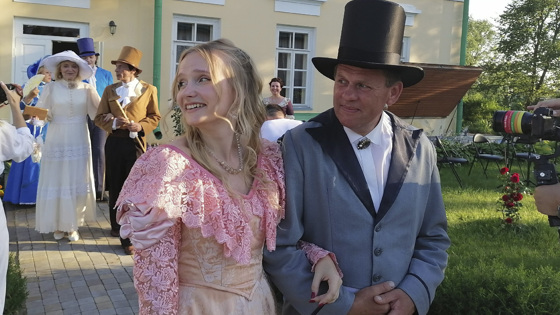 Проект «Атмосфера Фета» уже второй раз погрузила зрителей в эпоху автора «Вечерних огней». Он объединила актёров, музыкантов, художников, фотографов и музейных работников. Во время праздников в дворянских усадьбах их хозяева и гости музицировали, читали вслух стихи и прозу, устраивали и представления с элементами акробатики. И в этот вечер в Воробьёвке всеобщее внимание привлекали персонажи на ходулях с золотыми масками на лицах. Великий поэт написал в Золотухинском районе свои лучшие стихи, которые собрал в сборник «Вечерние огни», признанный венцом его творчества. Известно, что гостями Фета были Пётр Ильич Чайковский и Лев Николаевич Толстой. В 2024 году произведения Афанасия Афанасьевича, а также стихи и проза других русских поэтов и прозаиков, таких как Фёдор Тютчев, Тэффи, Мирра Лохвицкая звучали со сцены в Воробьёвке в исполнении актёров Курского драматического театра. – Очень приятно выступать в усадьбе, читать здесь русскую классику, – говорит актриса Елена Цымбал. – Здесь ощущение свободы – не давят стены. Зато поют птички, квакают лягушки. В музее Фета мы были, ещё когда реставрация только началась: следили за его судьбой. А теперь прекрасная усадьба встречает гостей при параде, её наполняет прекрасная музыка. На сцене в этот день выступил оркестр имени Георгия Свиридова, Воробьёвку наполняла классическая музыка. Праздничную атмосферу помог создать косплей. В нём приняли участие не только актёры в колоритной одежде фетовской эпохи. Художники собрались на пленэре в шляпках и нарядах в стиле конца XIX века, а некоторые использовали элементы русского народного костюма. Как свидетельствуют оригинальные фотографии тех лет, в таких нарядах действительно работали живописцы прошлого. Участники пленэра признали, что это хоть и не очень удобно, зато очень красиво. Не все, правда, отважились работать в нарядах времён Фета маслом – многие предпочли цветные карандаши и пастель. Когда начали собираться гости, работы участников вечернего костюмированного пленэра были уже почти готовы. Одни живописцы решили запечатлеть саму усадьбу, других вдохновили её окрестности, например, живописный пруд, в котором поэт когда-то разводил форель. Плавающие в нём лебеди и роскошные папоротники так и просятся на холст. А кто-то и вовсе решил изобразить пасущегося на траве вместе с лошадью и пони ослика Ника. На самом деле у него довольно длинное забавное имя, но отзывается он почему-то на Ник. Сокращенное от «Некрасов». Так звали настоящего ослика Фета. Назвал он любимца в честь своего друга XIX поэта Николая Некрасова, стихи которого ему не слишком нравились. Певец природы и чувств не признавал гражданскую лирику. В пленере участвовали художники разных возрастов и направлений. В этом году сюда пригласили талантливых первокурсников худграфа, интересующихся историей родного края. Светлана Бондарь, художник, преподаватель школы №27 участвует в костюмированном пленэре во второй раз. И не она одна. В усадьбу Афанасия Фета приятно возвращаться – в разное время суток и года она выглядит по-разному, но неизменно поэтично. – Всегда интересно изобразить историческое здание, самой почувствовать себя частью истории, — говорит она. – Атмосфера праздника лично меня не отвлекает, а наоборот, вдохновляет. Прямо перед усадьбой проходил вернисаж под отк
