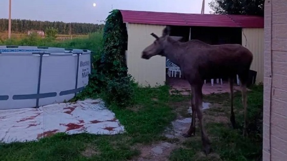 Интерес у лесного зверя вызвали садовые качели, которые стояли во дворе. Лось решил попробовать на зуб тент и в итоге порвал его. После такого «поведения» сохатого попросили покинуть территорию: хозяин вместе с соседями проводил его на поляну перед лесом.