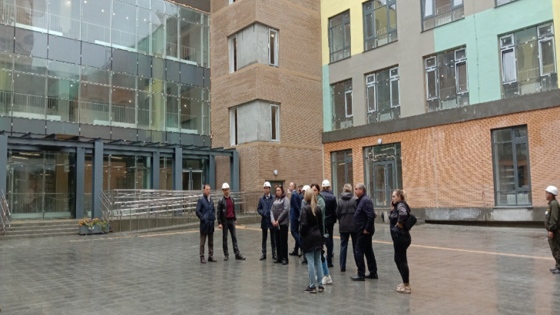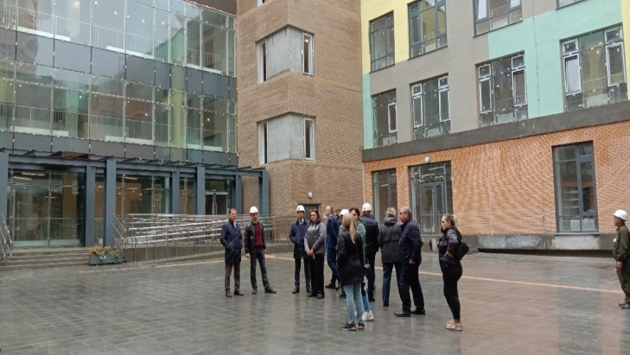«Строительная готовность – высокая. Возведены фундамент и каркас здания, наружные и внутренние стены, перегородки, остеклён фасад, смонтированы оконные блоки, кровля. Отделочные работы – на завершающем этапе. Сегодня мы обратили внимание на некоторые недочёты, например, не полностью выполнена гидроизоляция между отмосткой и стеной цоколя, неравномерно выполнен уклон основания площадки перед главным входом для отведения воды. Подрядчику предстоит их устранить», — сказал Сергей Капишников.