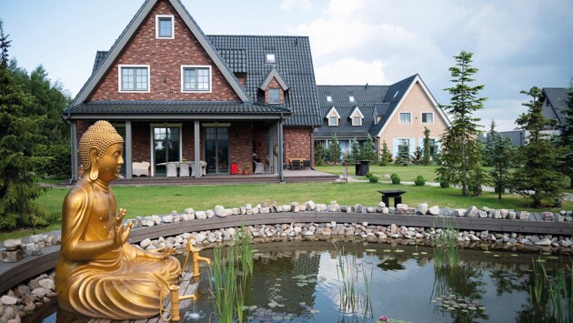 • На территории: озеро, бассейн, ландшафтный парк и теплицы